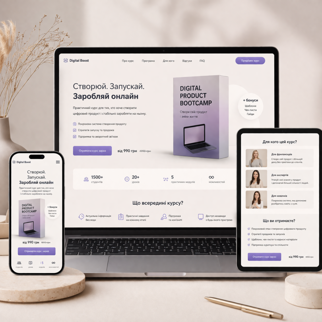 Працюю з інтернет-магазинами, маркетплейсами та сайтами послуг, поєднуючи дизайн, логіку та SEO-структуру.