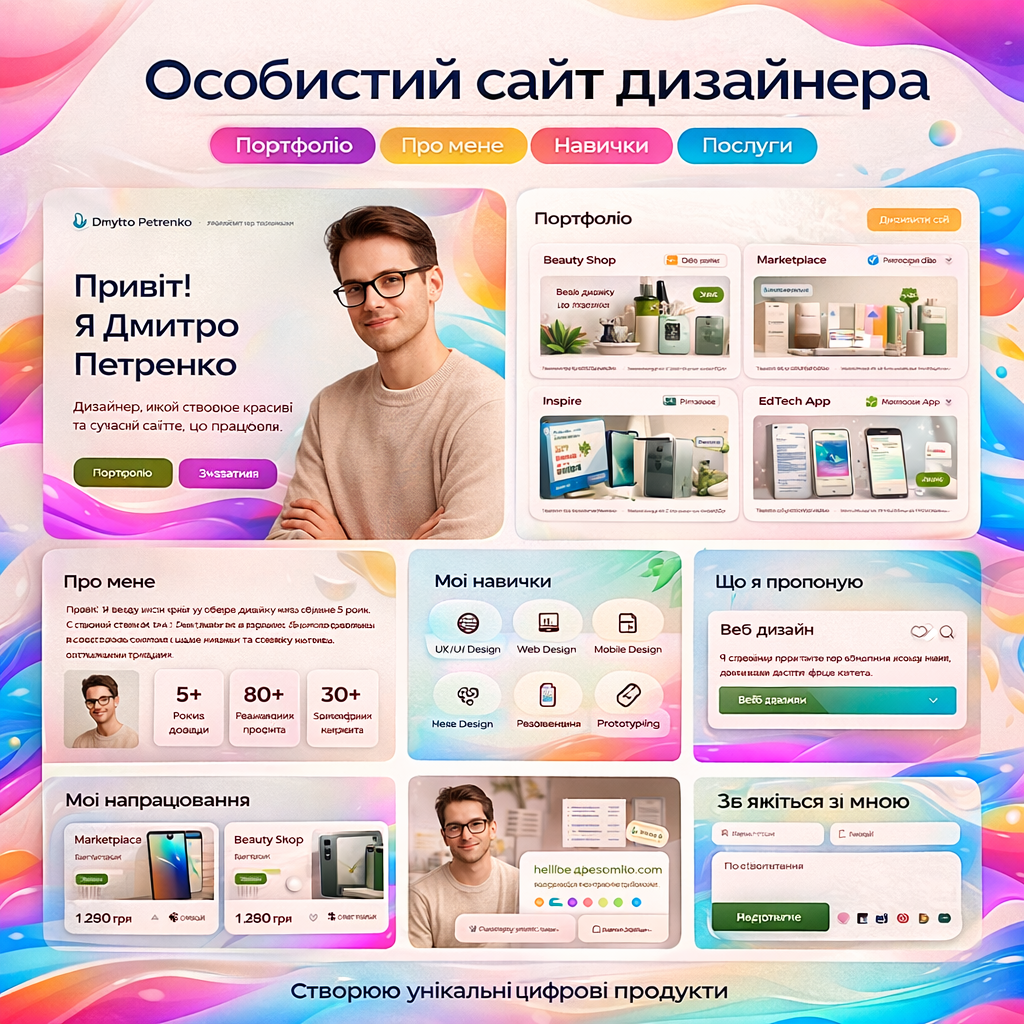 Я — UI/UX дизайнер, який створює структуровані, сучасні та зручні цифрові продукти.